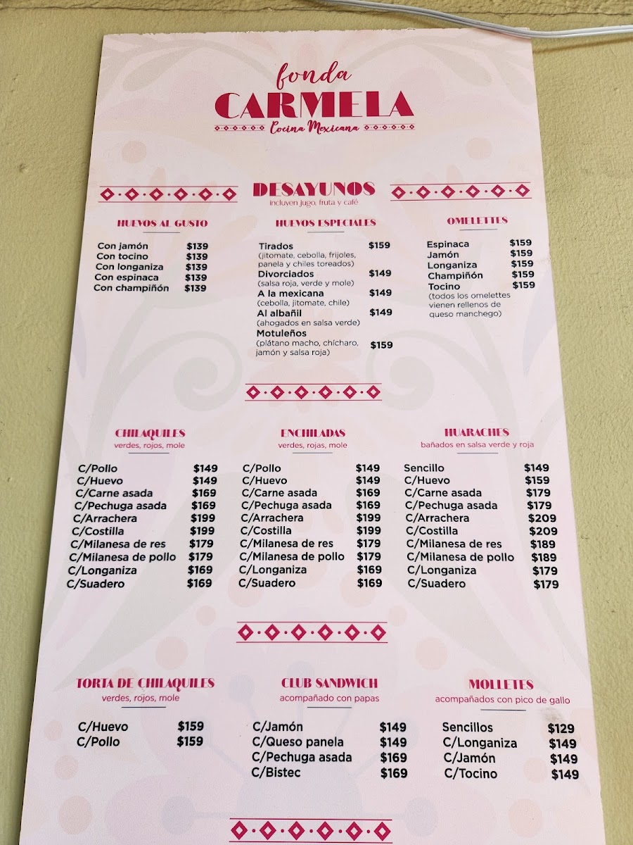 Lunch options don't disappoint either, featuring classics like milanesa de res and chilaquiles, each artfully prepared and served with a side of vibrant salad. To satisfy your sweet tooth, indulge in homemade desserts such as the pastel de 5 chocolates or fresas con crema. Patrons commend the exceptional service and cozy ambiance, making every meal here a memorable occasion. Fonda Carmela promises not just food, but a heartfelt slice of Mexican culture.
